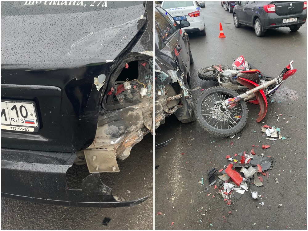 В карельской столице молодой человек на мопеде врезался в автомобиль.