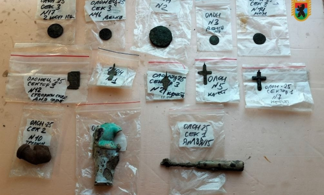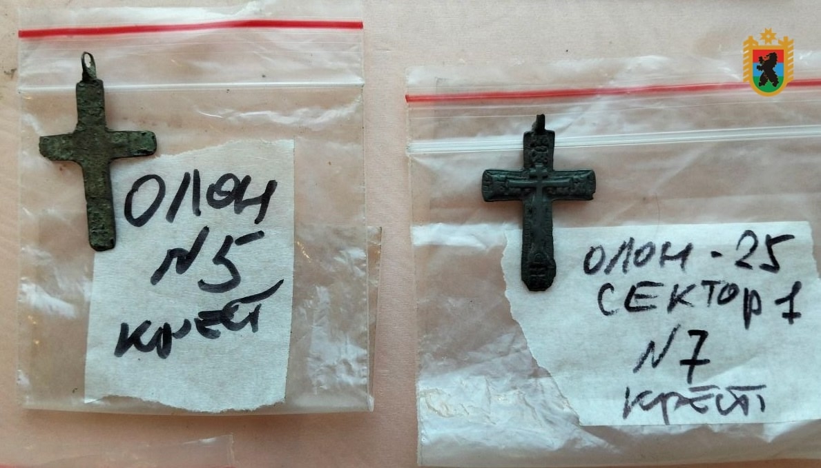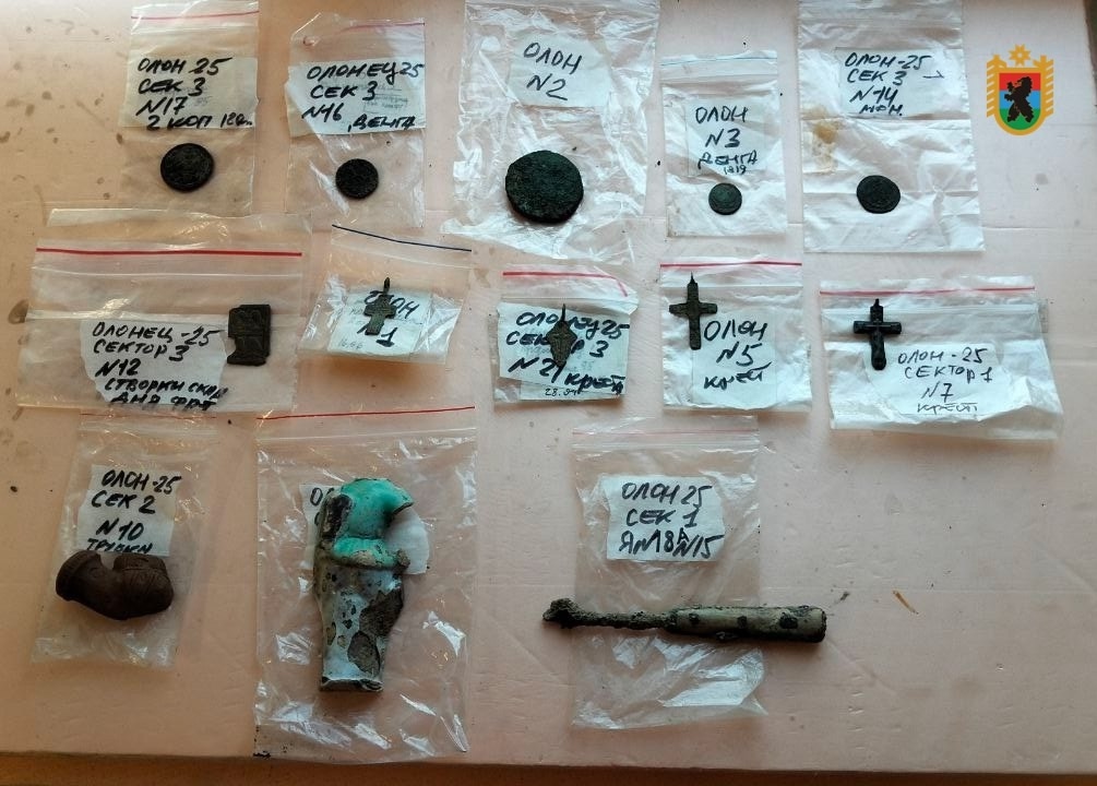 Среди них — екатерининская монета, нательные крестики и другие предметы, относящиеся, предположительно, к XVIII–XIX векам. Об этом сообщили в ОПС по Олонецкому району.