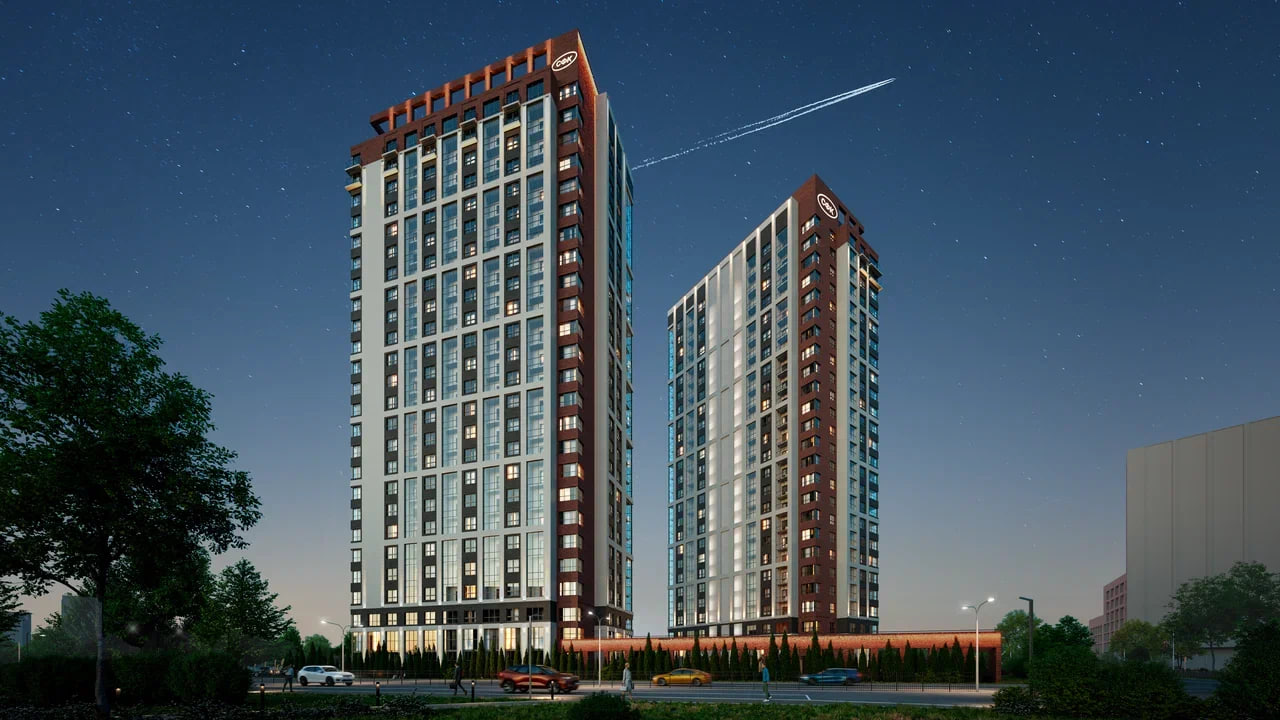 Два 25‑этажных дома, созданные по индивидуальному проекту архитектора А. С. Скрипицына, формируют современный архитектурный ансамбль. Особенностью комплекса является аркада, объединяющая корпуса, а вечерняя архитектурная подсветка фасадов придает выразительный визуальный акцент.