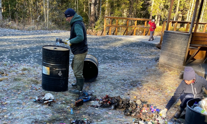 Первый субботник прошел на лыжной трассе Фонтаны. Участники убрали мусор со всех мест отдыха, навели порядок на развилке, разобрали и вывезли старые деревянные навесы и беседки.