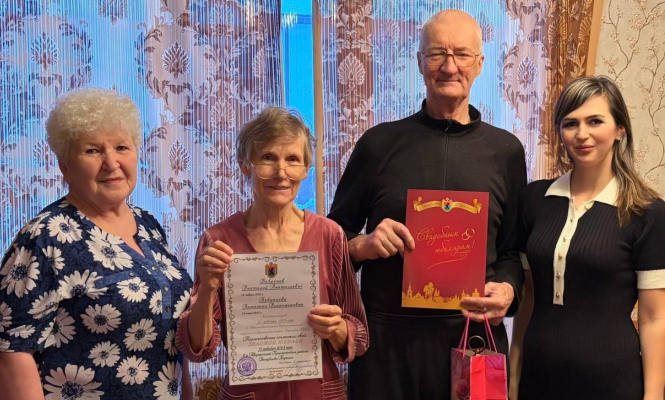 30 декабря, семью поздравили глава Шокшинского вепсского сельского поселения и Председатель Совета ветеранов. Бекреневым вручили юбилейное свадебное свидетельство, поздравительный адрес от главы Карелии и памятные подарки от отдела ЗАГС. По традиции их подписи были внесены в Книгу почётных юбилейных свадеб.