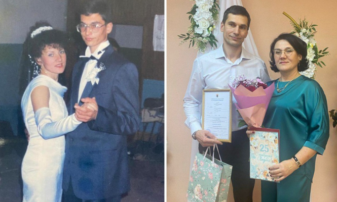 В городе Лахденпохья супруги Дмитрий Владимирович и Ирина Анатольевна Косаревы отметили 25-летие семейной жизни.