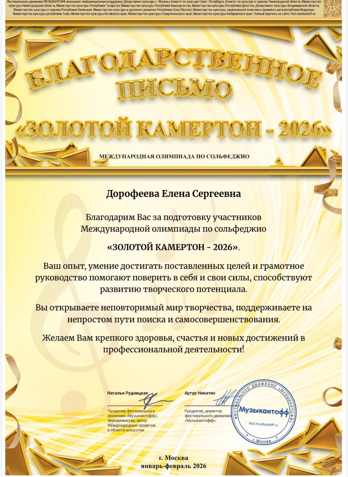 Лука Горданов завоевал звание лауреата I степени на Всероссийской теоретической олимпиаде «Золотой камертон-2026» в Москве.