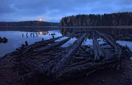 Обмелевшее озеро в Карелии обнажило баржи, столетие пролежавшие на дне