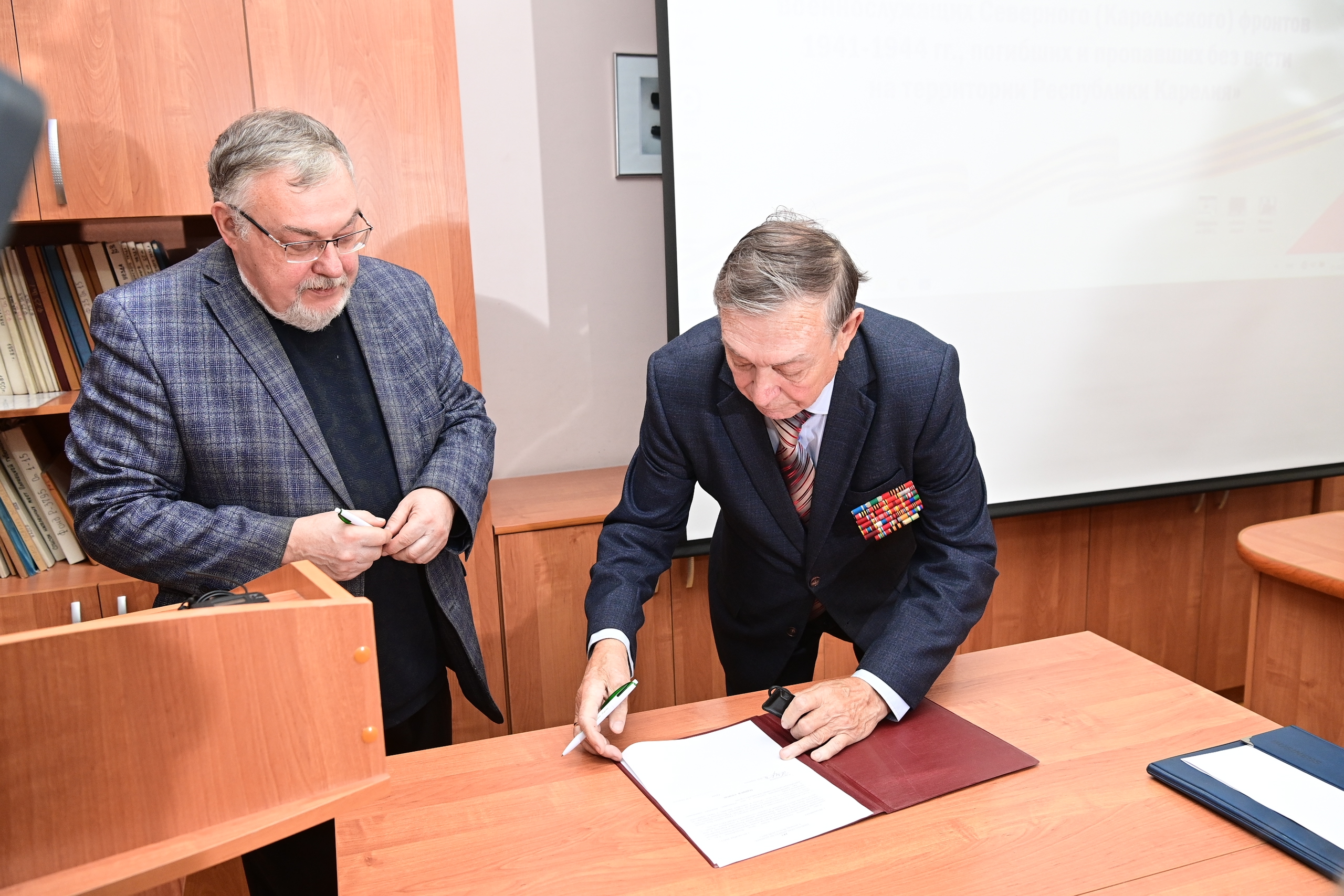 Цифровой ресурс, содержащий сведения о более чем 200 тысячах защитников Отечества, был передан Советом ветеранов войны и труда, Вооружённых сил и правоохранительных органов Республики Карелия на вечное хранение в Национальный архив региона. Соответствующее соглашение было подписано сторонами в ходе мероприятия.
