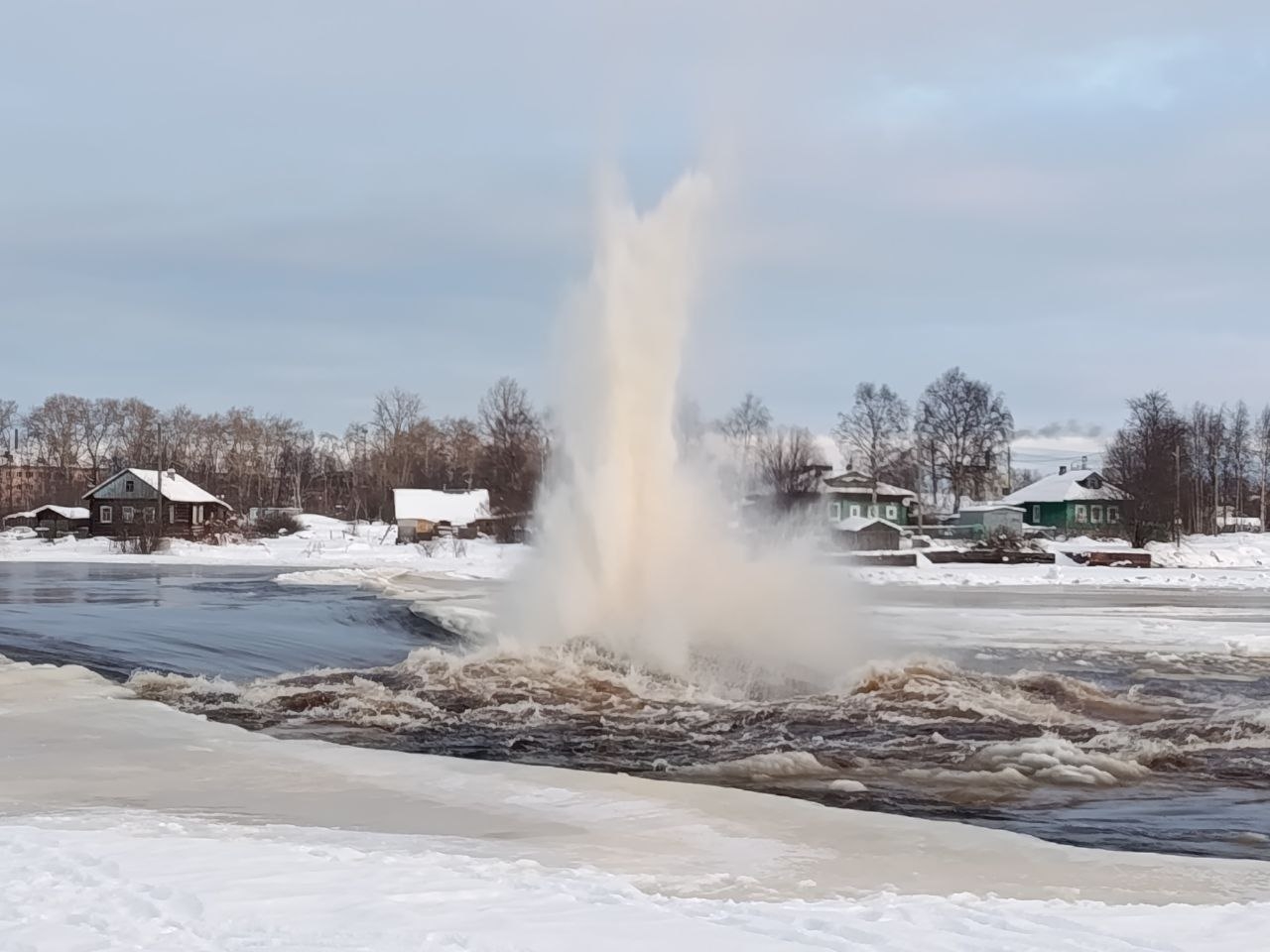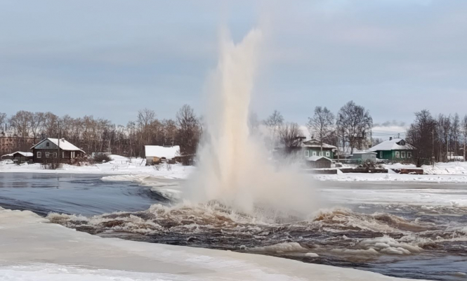 Напомним, в январе этого года карельские спасатели уже проводили взрывные работы на этой реке. Всего произвели 30 подрывов ледового покрытия, уровень воды снизился до 60 см.