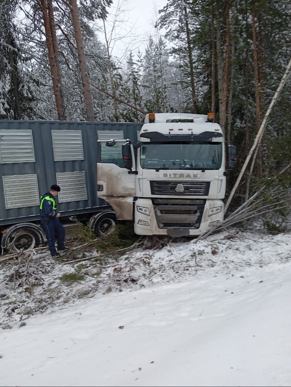 Второе происшествие было зафиксировано в 12:57 на 990 километре трассы в Лоухском районе. Фура «SITRAK» с прицепом съехала в кювет. Дежурный караул ПЧ-57 провел осмотр места ДТП, но проведение аварийно-спасательных работ не потребовалось.