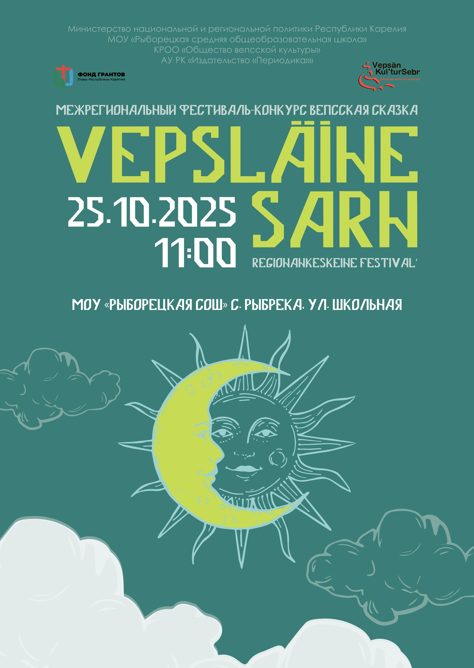 Проведение конкурсной программы в очном формате, подведение итогов и награждение победителей состоится 25 октября 2025 г. по адресу: Республика Карелия, Рыборецкое вепсское сельское поселение, с. Рыбрека, ул. Школьная 8. Начало мероприятия в 11:00.