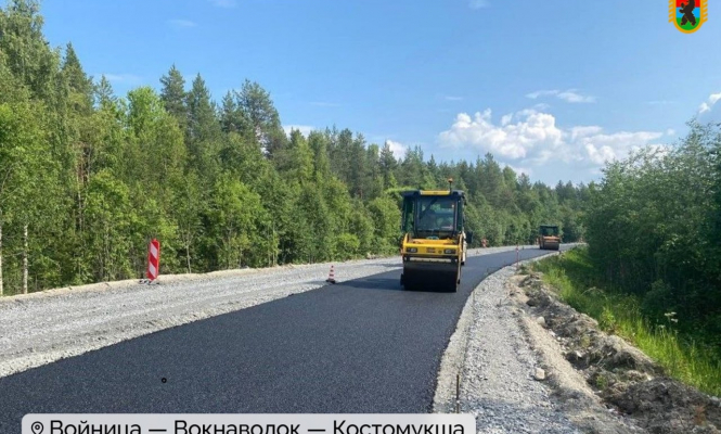 Особое внимание уделили дороге «Войница — Вокнаволок — Костомукша». В Костомукшском округе работы идут на двух участках общей протяженностью более 56 км. На первом участке готовность уже составляет 55% — подрядчик ведет земляные работы и укладывает асфальт.