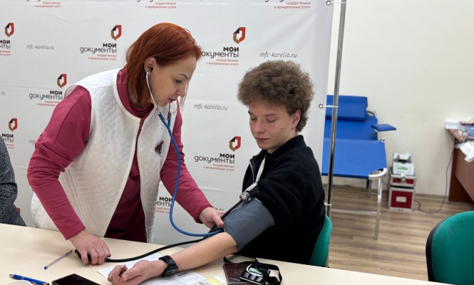 Республиканская станция переливания крови впервые организовала выездную донорскую акцию на рабочем месте — для сотрудников Многофункционального центра (МФЦ) Республики Карелия.
