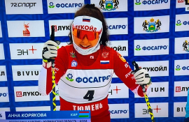 Анна Корякова принимает участие во втором этапе Кубка России по лыжным гонкам.