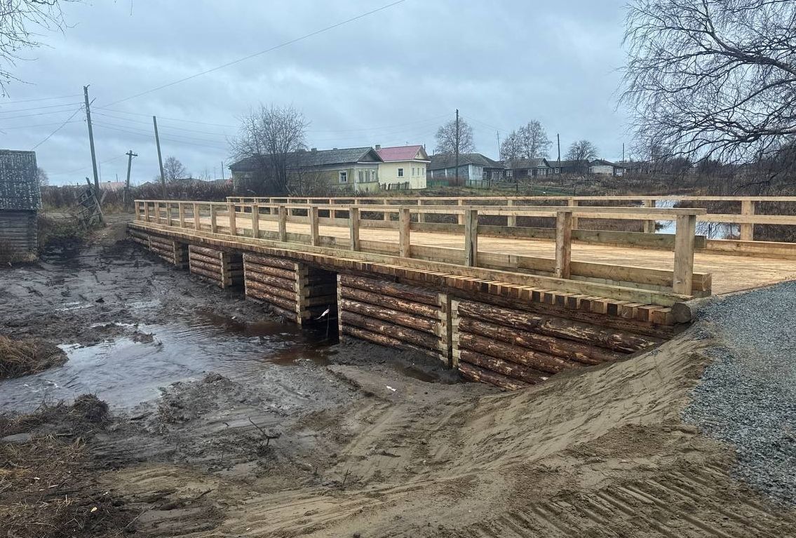 В селе Колежма Беломорского района завершен ремонт моста, на который изначально не было средств. Но после жалоб местных жителей деньги нашли.