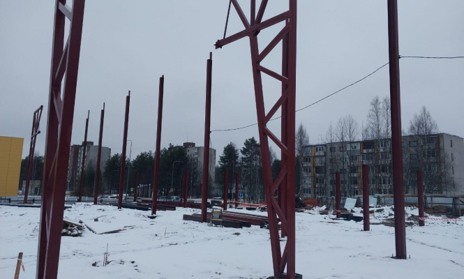 Крытую ледовую площадку строят в Костомукше по проекту «Современный облик сельских территорий».