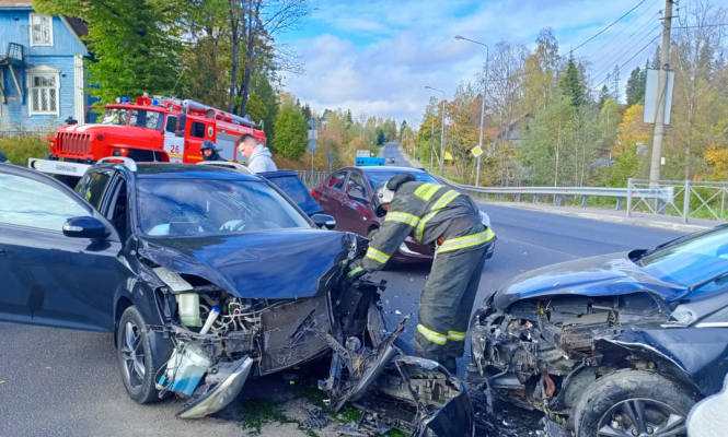 Сегодня, 7 октября, в Лахденпохье на улице Ленина примерно в полдень произошло лобовое столкновение автомобилей. По данным Госкомитета по безопасности республики, сообщение о ДТП поступило в 12:00.
