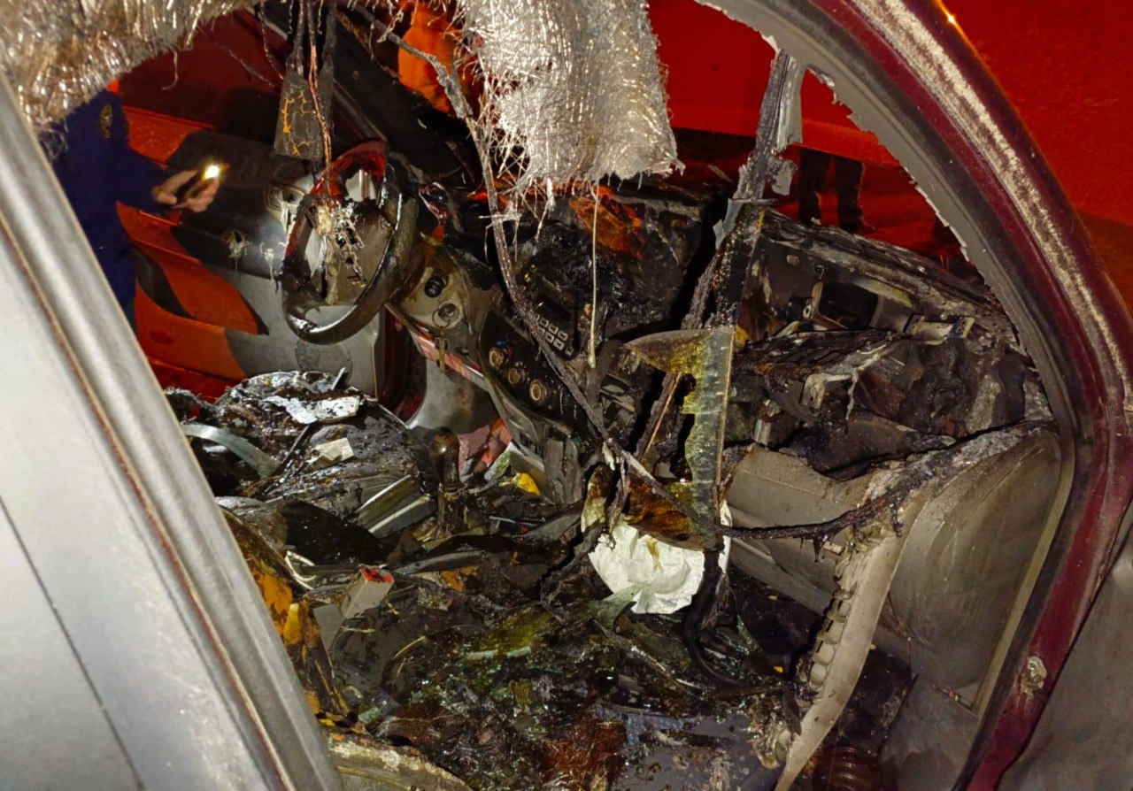 Известно, что на место выехали 2 автоцистерны местной пожарной части. В результате пожара поврежден только салон автомобиля.