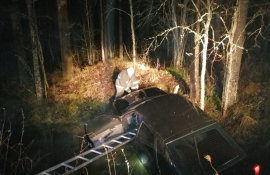 Автомобиль упал в канаву с водой на дороге в Олонце