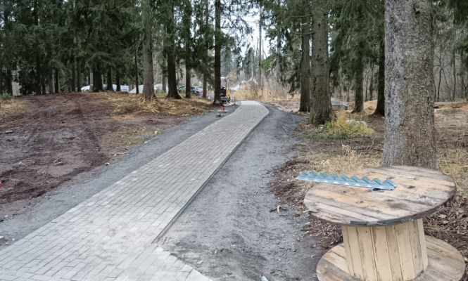 В Лахденпохье продолжается благоустройство парка «Аурайоки». Как рассказали чиновники, детская и спортивная площадки полностью подготовлены для укладки резинового безопасного покрытия. Идет монтаж уличного освещения и системы видеонаблюдения, укладка брусчатки, формируется дорожно-тропиночная сеть парка.