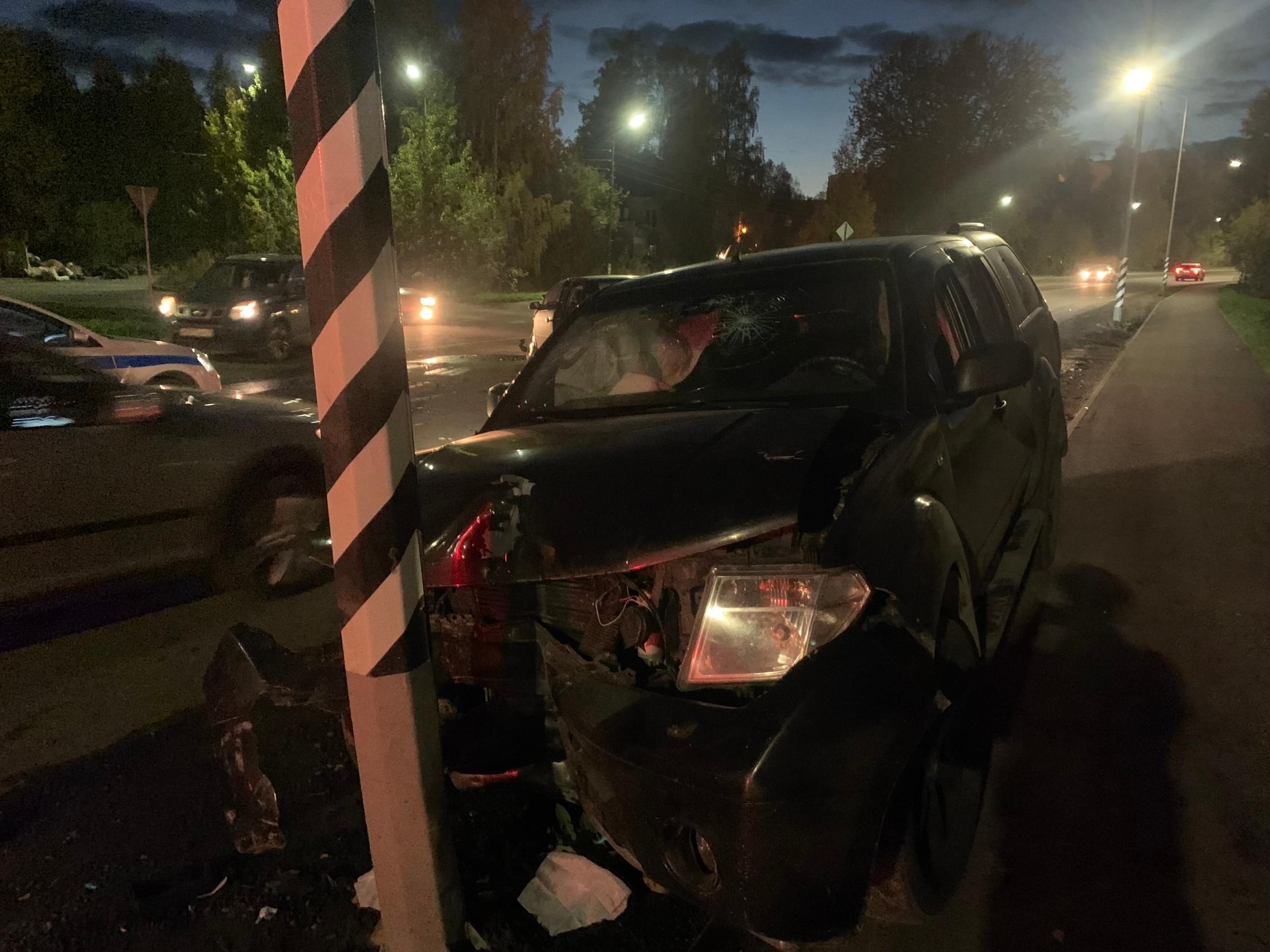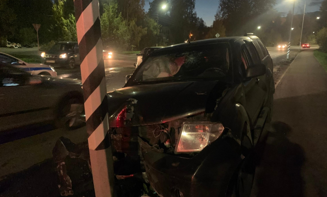 Из-за столкновения автомобиль Nissan отбросило на столб. Обстоятельства ДТП устанавливаются.