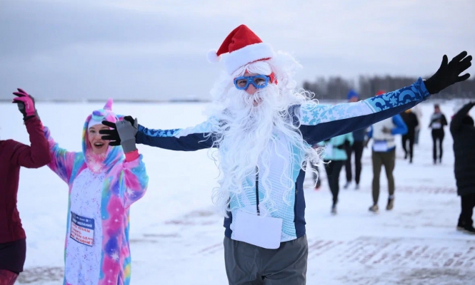 Утром 1 января сотни горожан разного возраста в праздничных нарядах вышли на Онежскую набережную, чтобы принять участие в ежегодном «Забеге желаний».