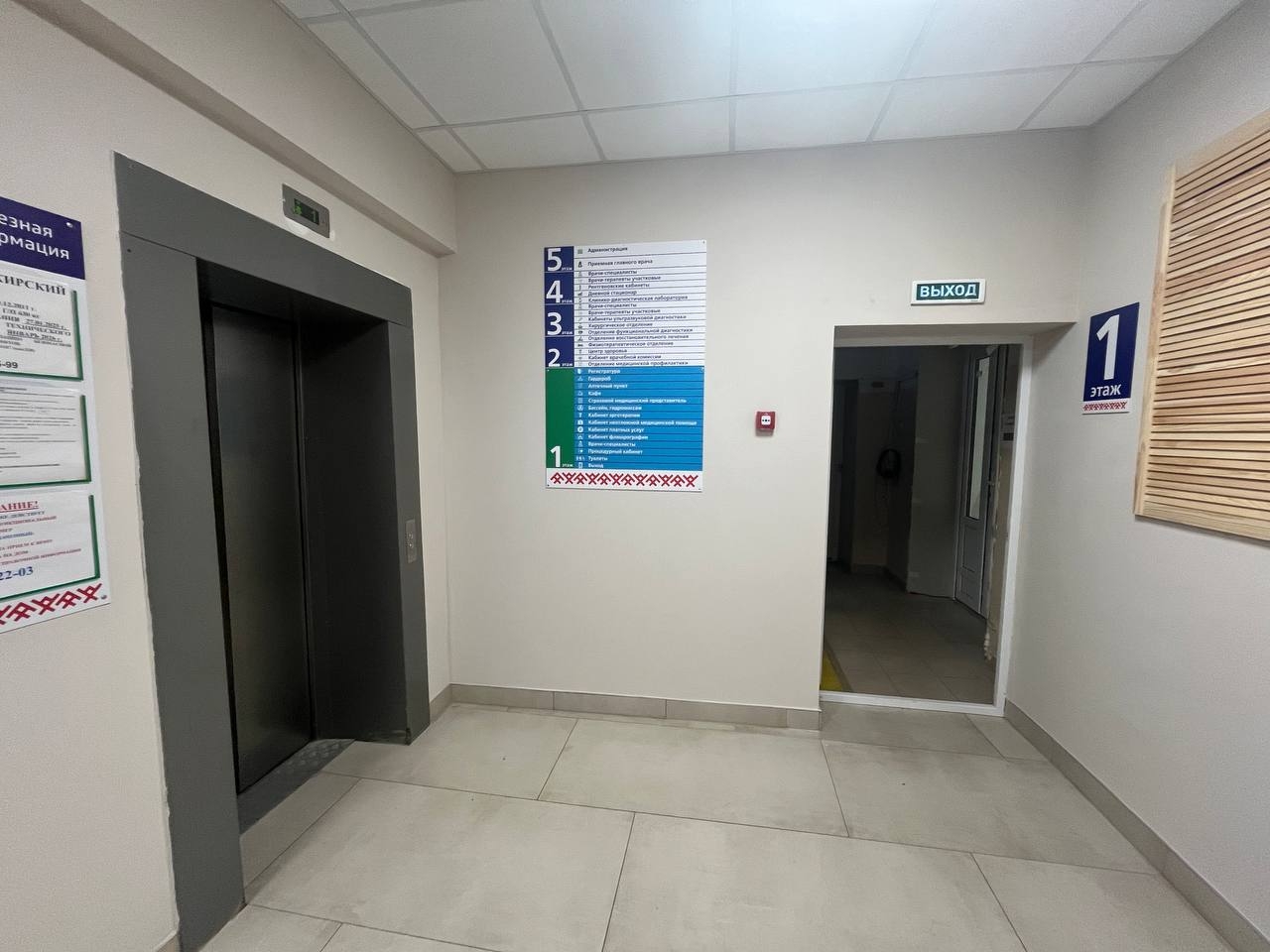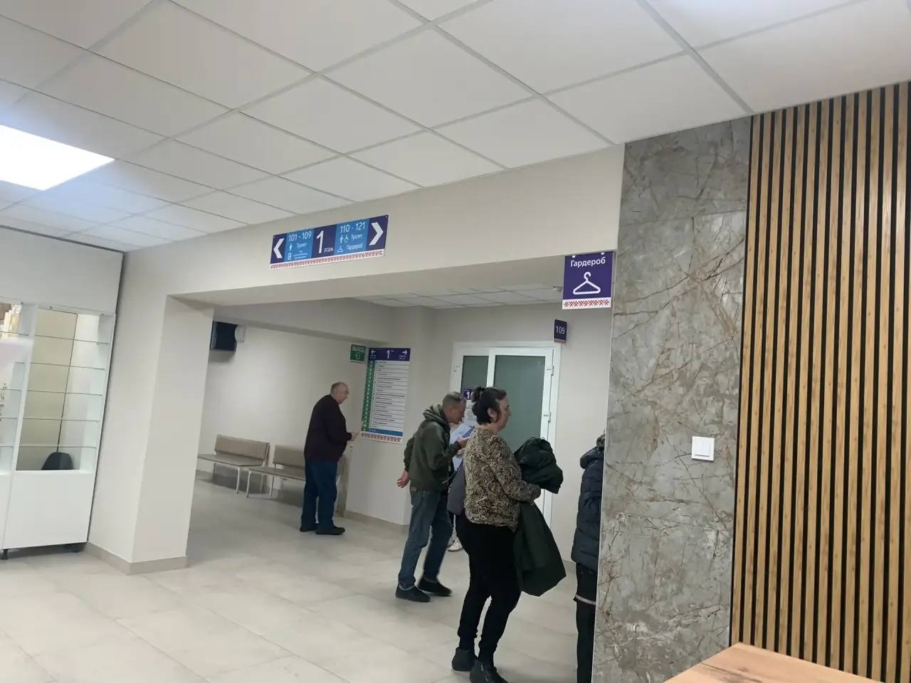 Теперь пространство на первом этаже стало более современным и удобным. Для пациентов с признаками простудных заболеваний организовали отдельную «красную зону» с собственным входом. Появился новый гардероб с двусторонней сдачей одежды, а аптечные пункты вынесли на первую линию для большего удобства.