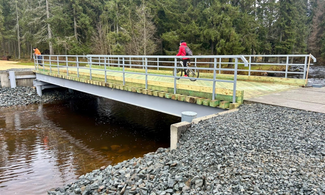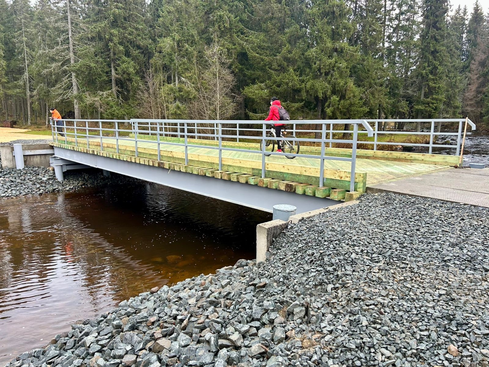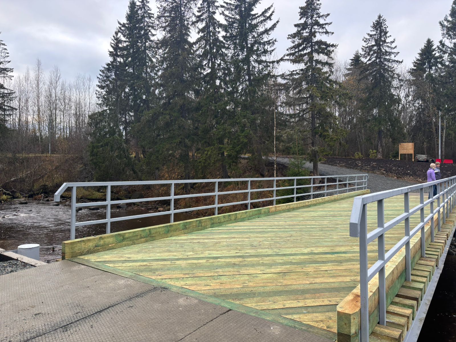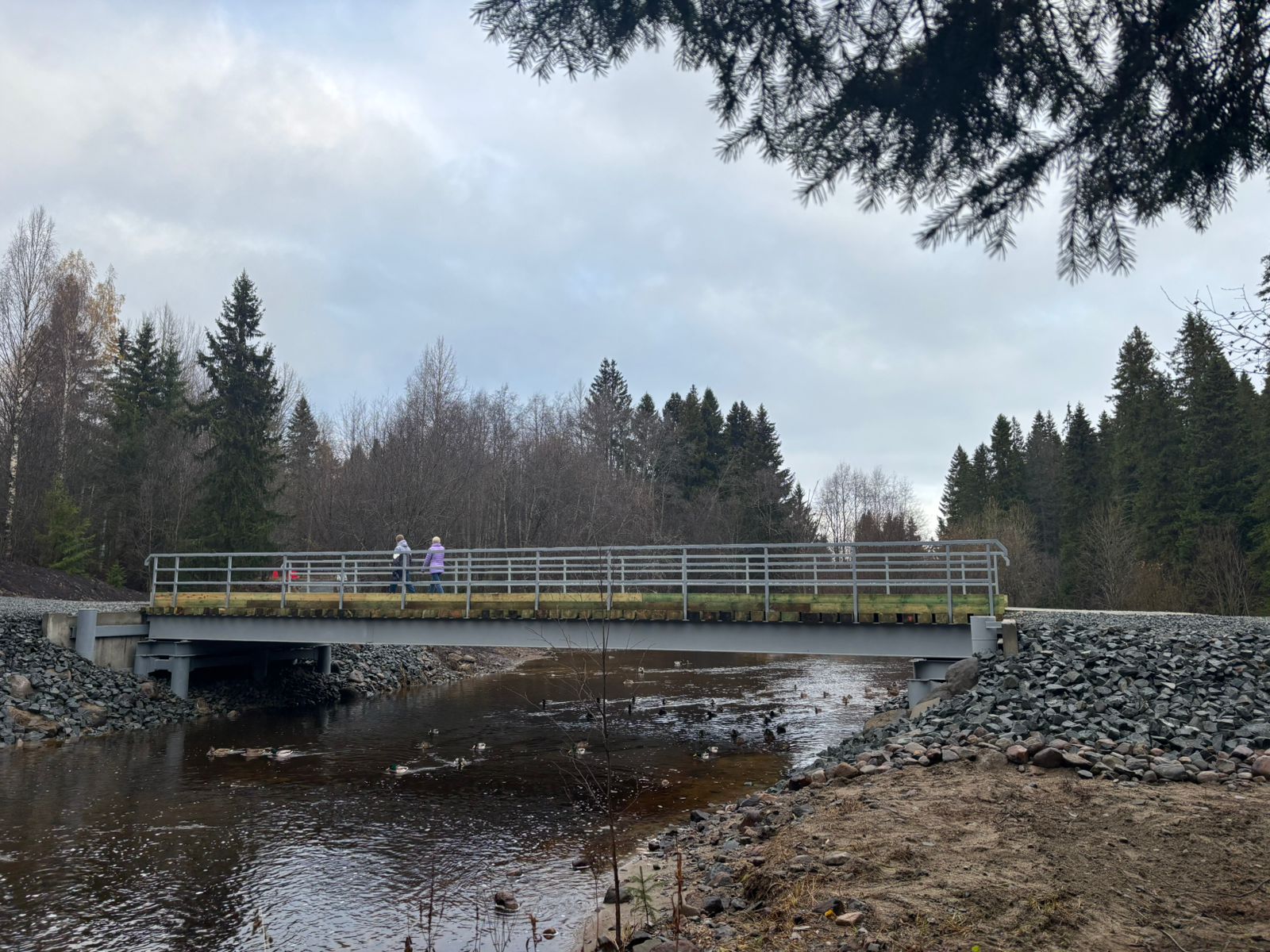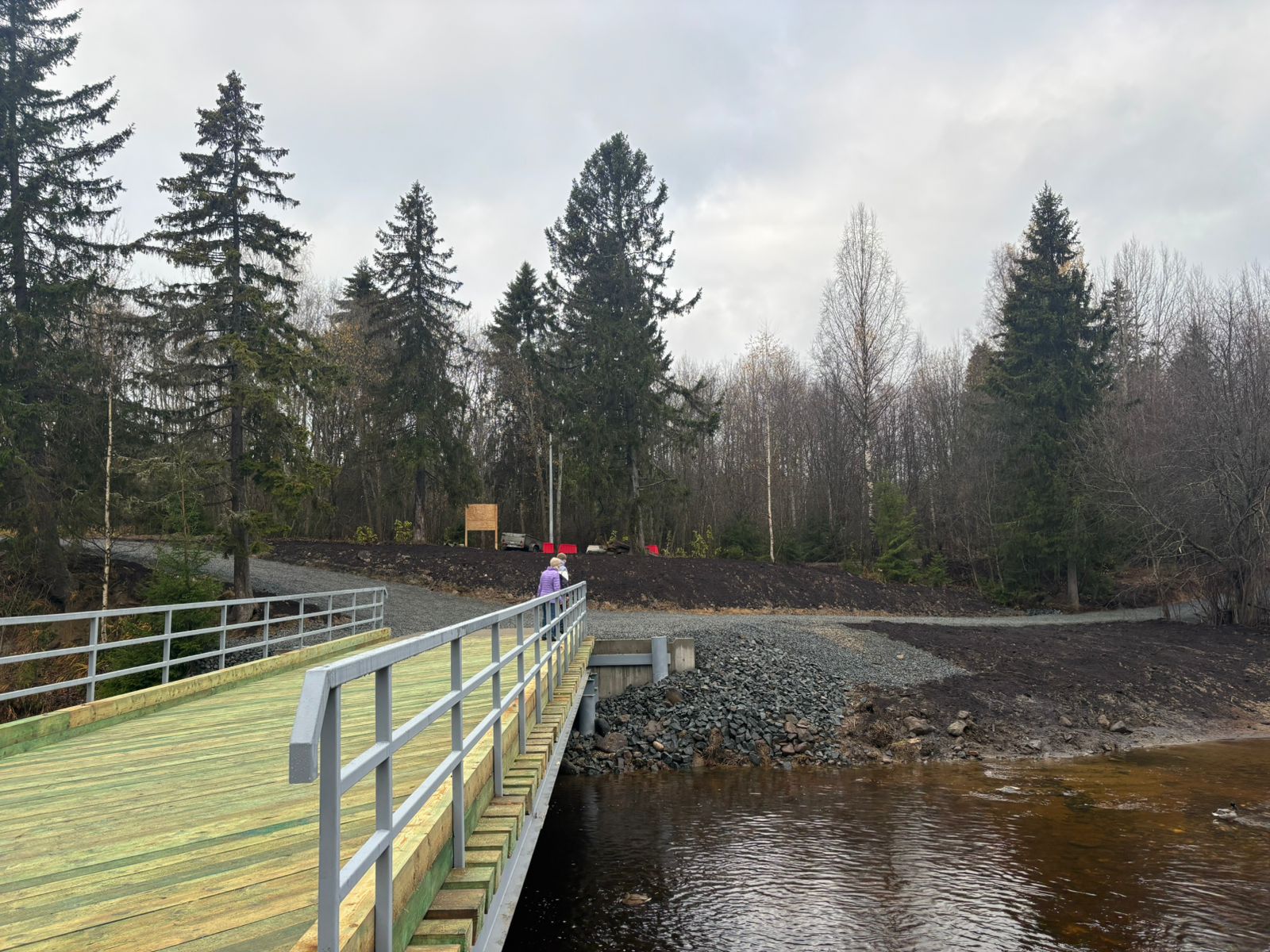 Строительство моста через реку Лососинка на Кургане завершено, движение по новому мостику открыто.