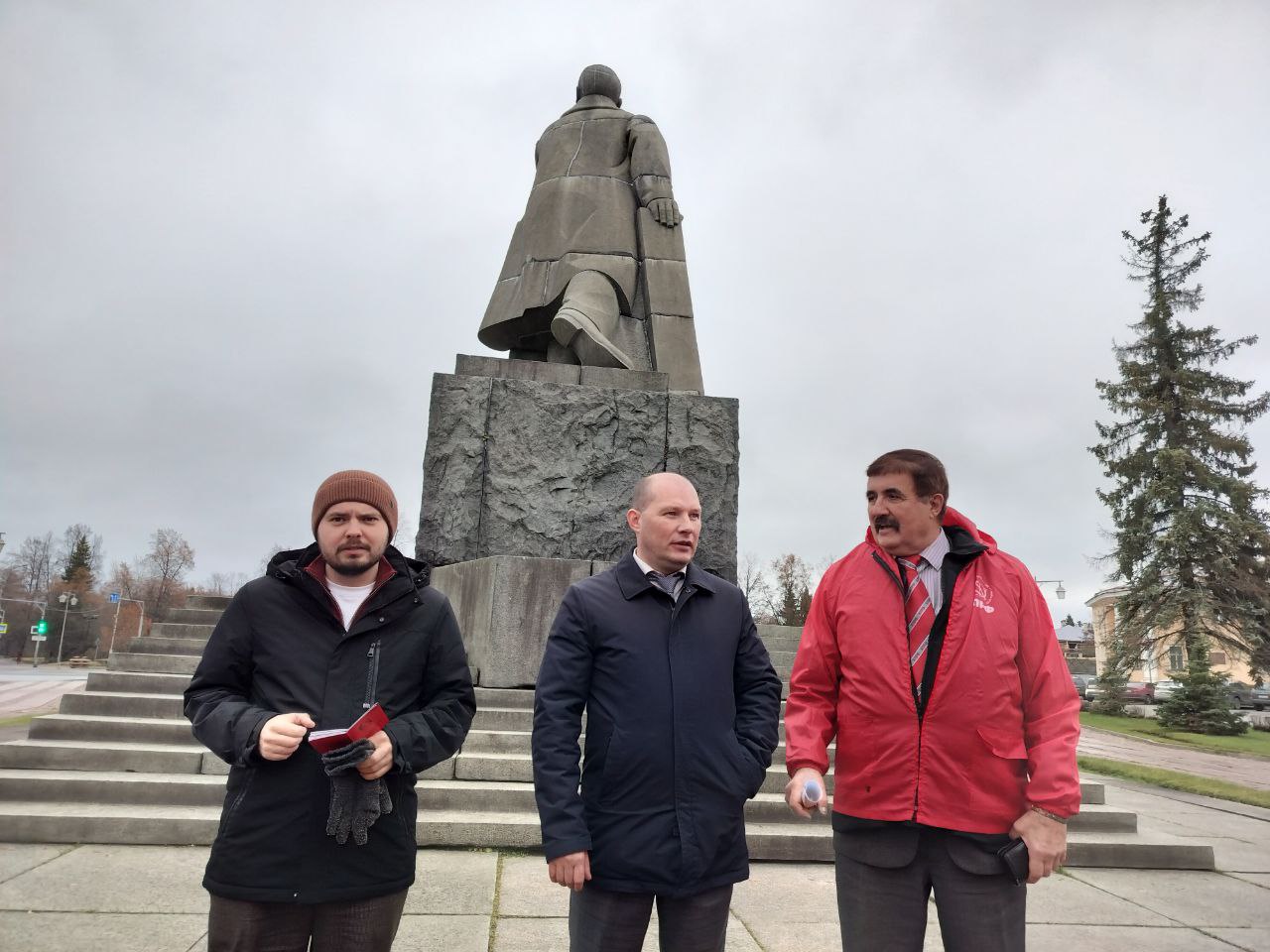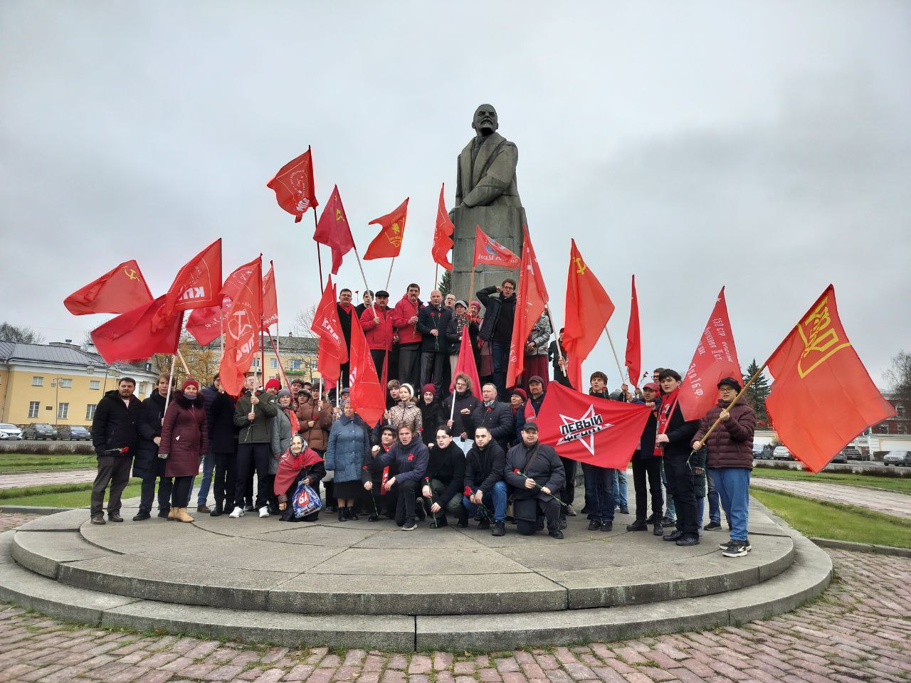 В мероприятии, посвященном 98-й годовщине Октября, приняли участие представители карельского отделения КПРФ и сторонники - несколько десятков человек. Как рассказал лидер коммунистов Евгений Ульянов, акция изначально не была согласовала городскими властями, но через суд удалось добиться отмены этого решения. Так что сегодняшнее мероприятие — законное, заверил Ульянов.