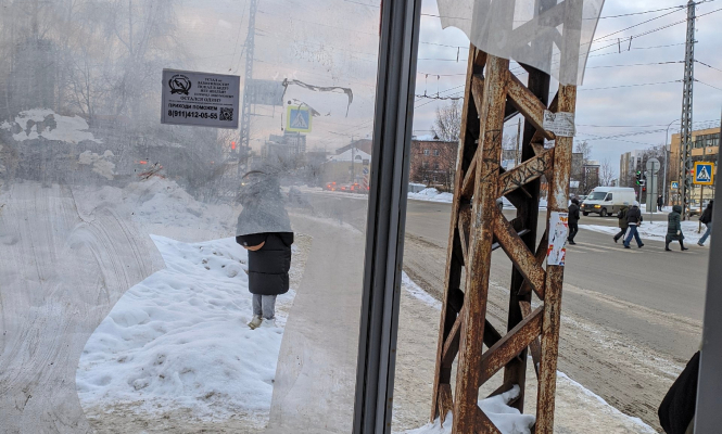Травмоопасную ситуацию создают повреждённые элементы конструкции: в панелях из оргстекла зияют дыры, а с одной стороны крупный осколок стекла опасно свисает, угрожая прохожим.
