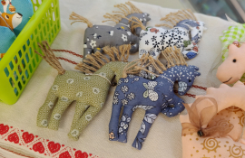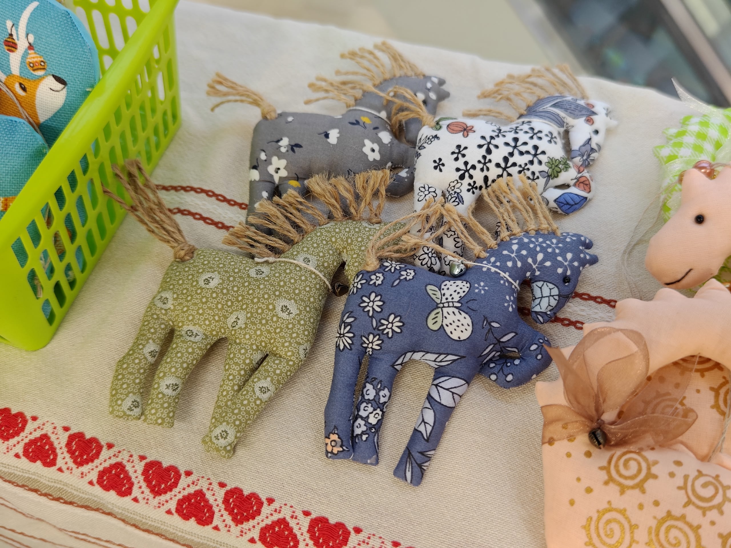 В этом году ярмарка проходит под знаком Года лошади. Выбрать есть из чего. Мастера подготовили множество интересных и необычных вещей с изображениями коней — это и декор из дерева, и вязаные игрушки, и текстиль, есть даже сладости и мыло с символом грядущего года.