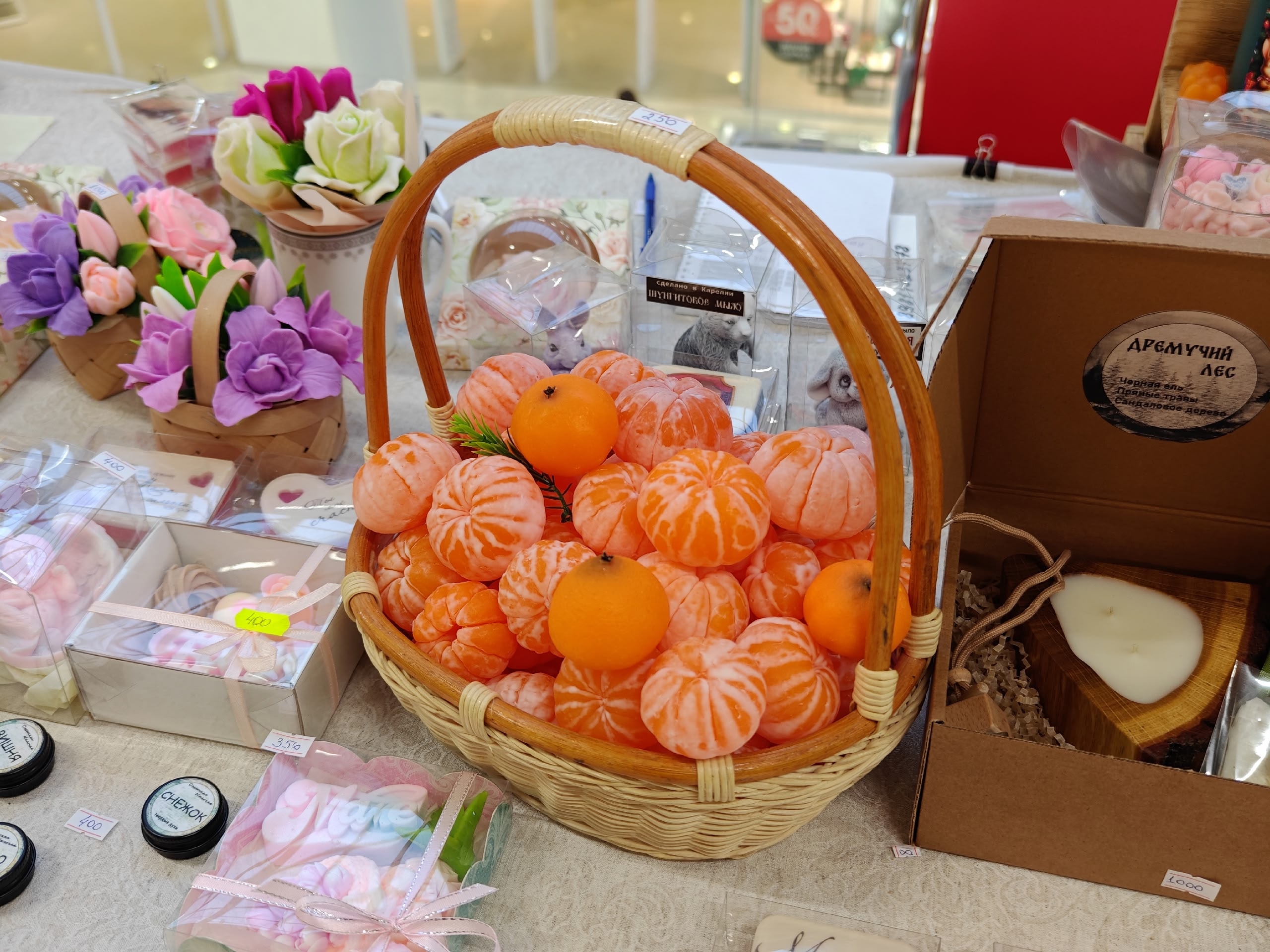 Уже сейчас, в начале декабря, можно окунуться в атмосферу праздника. Вечная елово-мандариновая классика представлена во всевозможных вариациях. Можно буквально почувствовать аромат Нового года — на ярмарке продается множество свечей с натуральными ароматами цитрусовых, хвои и зимних согревающих напитков.