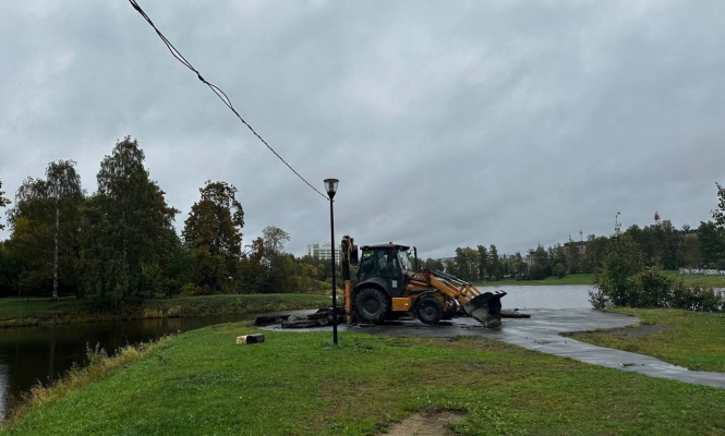 В Зарецком парке Петрозаводска ведутся активные работы по благоустройству территории. Как сообщила мэр города Инна Колыхматова, подрядчик в это время готовит основание для пешеходных дорожек из бетонной брусчатки.