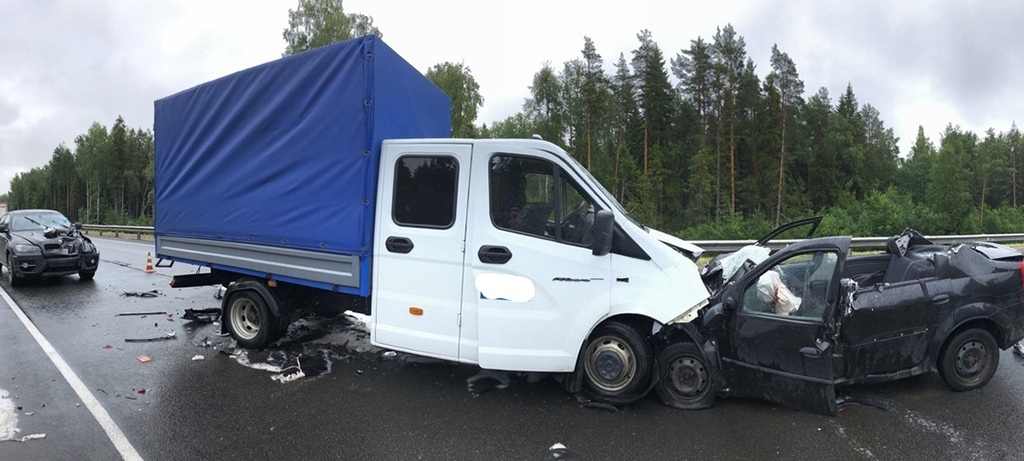 По предварительным данным, в Прионежском районе 32-летний водитель легкового автомобиля Renault, выполняя правый поворот со стороны Старой Вилги, выехал на полосу встречного движения и столкнулся с "Газелью".