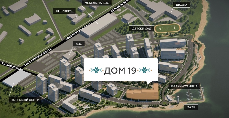 Дом № 19 — самый ожидаемый на территории нового района «Талоярви». Его особенности — непосредственная близость к набережной и воде, шикарные прямые виды на Онежское озеро, а также интересная архитектура — здание состоит из блоков различной высоты, от 5 до 14 этажей.