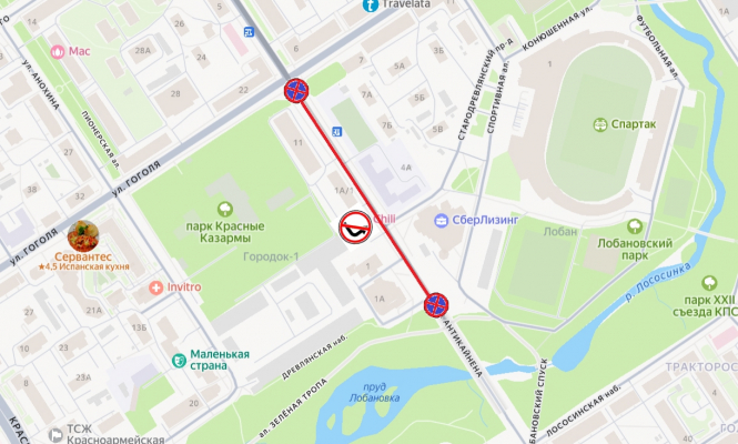 С 19 октября запретят стоянку и остановку транспорта на участке улицы Антикайнена от улицы Гоголя до Лобановского моста. Помимо этого, запретят поворот налево с улицы Антикайнена на Стародревлянский проезд.