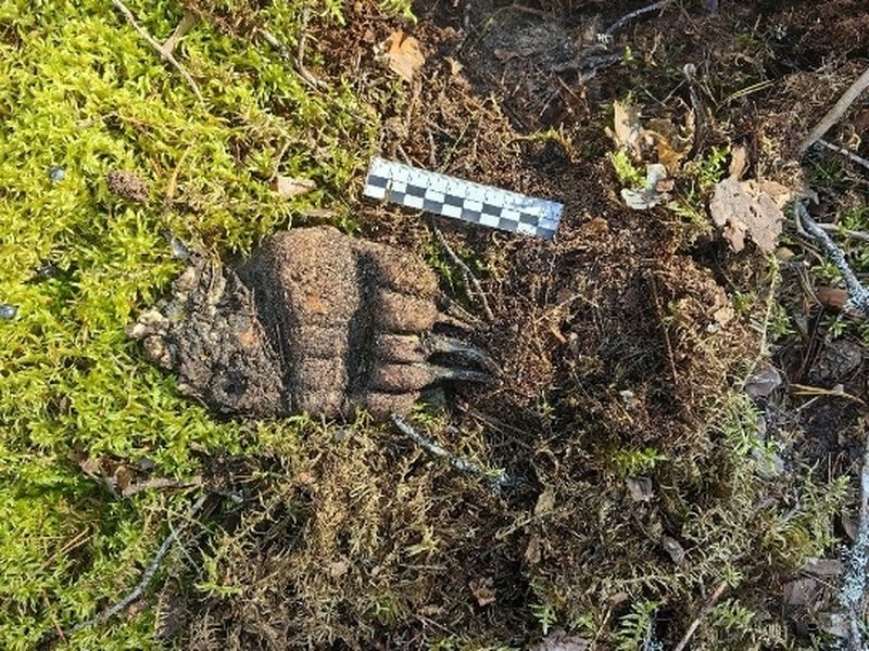 В заповеднике «Кивач» ученые Карельского научного центра РАН обнаружили в развороченном слое мха медвежью лапу. Как потом выяснилась, лапа принадлежала совсем юному медвежонку. Бедолага погиб в возрасте около полугода. В заповеднике уверены, что растерзал его другой медведь. Потом куда-то нёс, обронив по пути левую стопу медвежонка.
