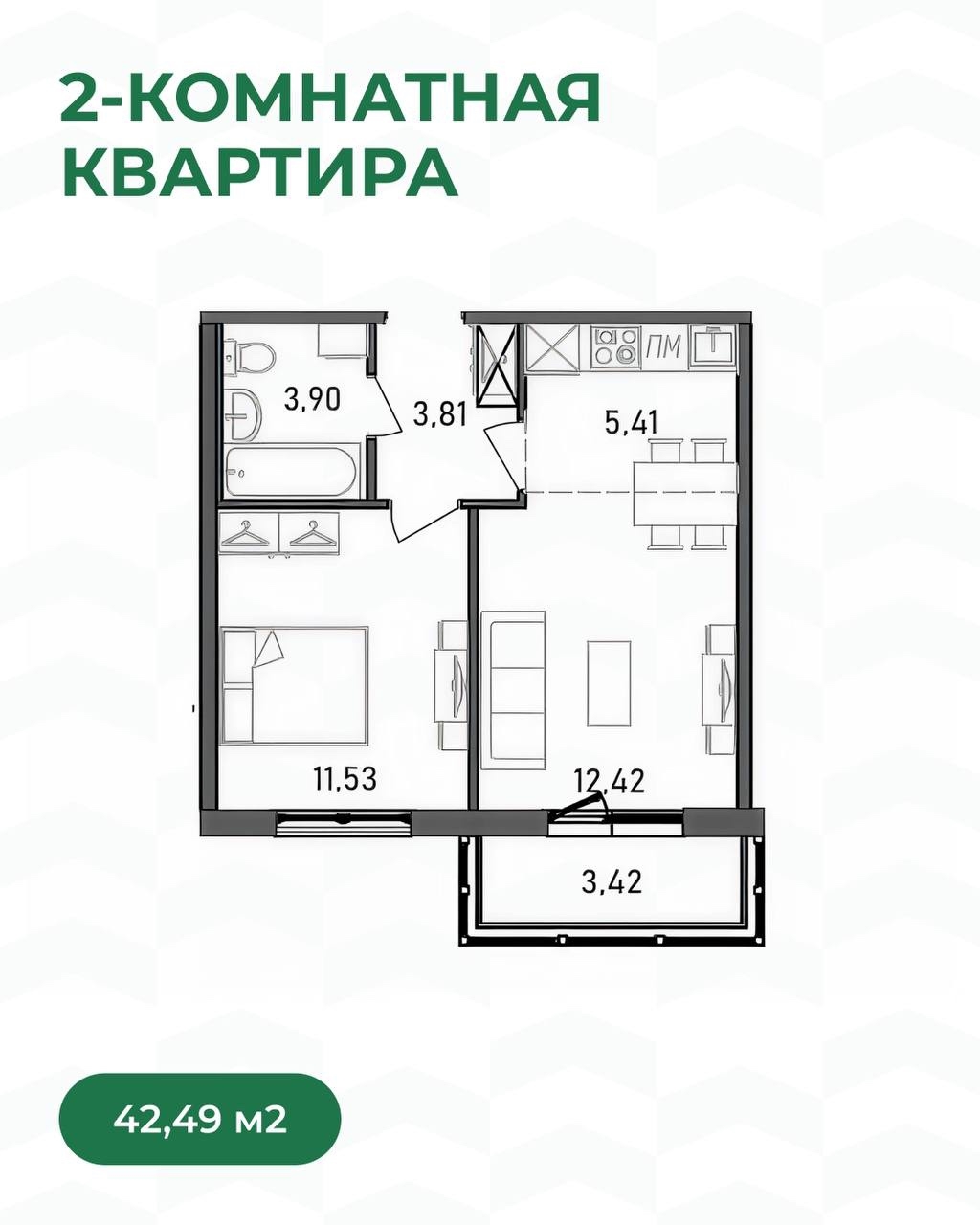 2-комнатные — для пар и небольших семей: есть место для совместного отдыха, работы и хобби, а отдельная комната может стать спальней, кабинетом или детской.