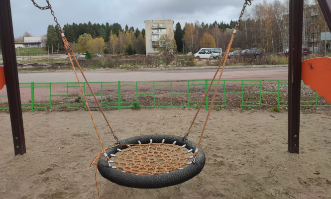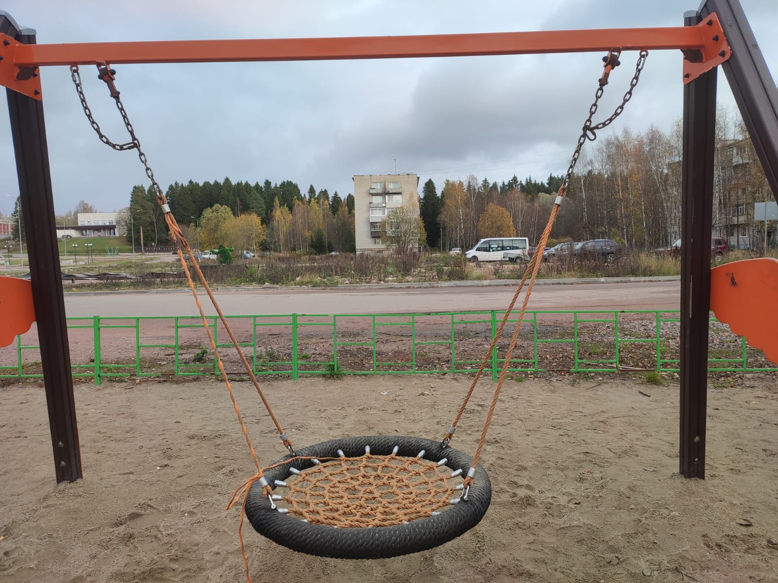 В городе Питкяранта на детской площадке по улице Рудакова неизвестные повредили качели-гнездо.