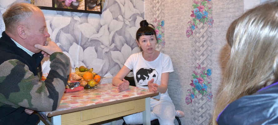 Екатерина Александровна сейчас снимает квартиру в поселке Хелюля, Сергей Крупин заехал к ней, чтобы пообщаться лично и поговорить о необходимой помощи.