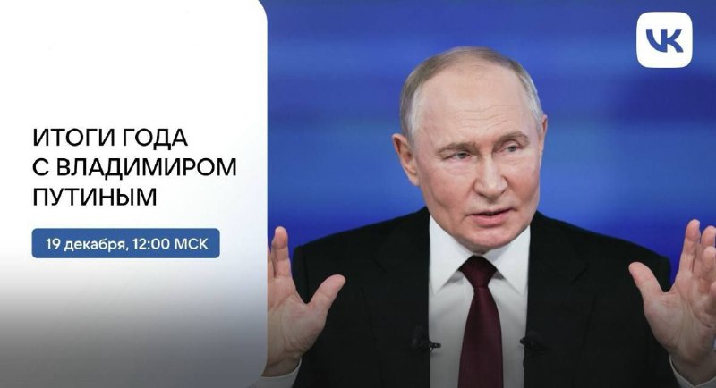Сегодня, 19 декабря, в 12:00 по московскому времени в прямой эфир в третий раз выйдет телепрограмма «Итоги года с Владимиром Путиным», на которой президент России подведёт итоги уходящего 2025 года и ответит на вопросы журналистов и жителей страны.