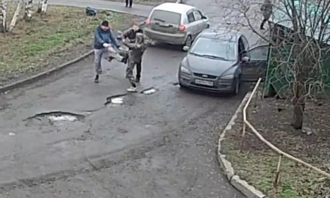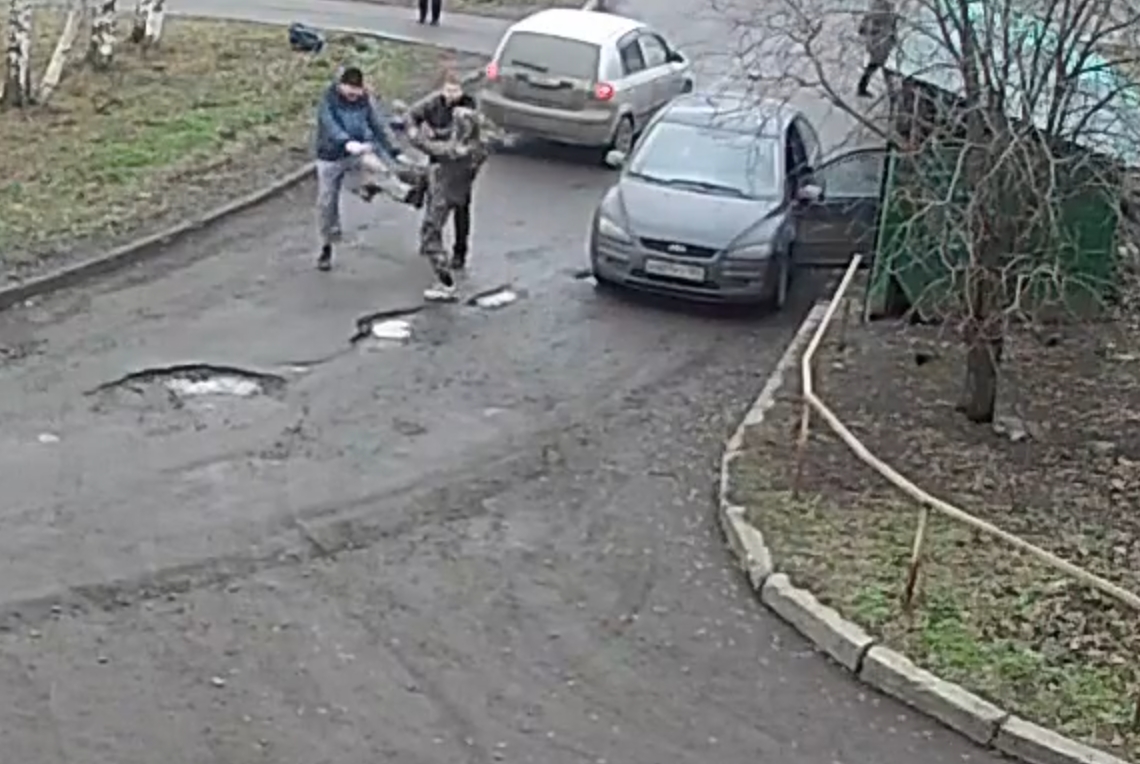Мужчины не смогли мирно разойтись на придомовой территории. Водитель ехал по двору, пешеход шел рядом с машиной. Судя по всему, в какой-то момент автомобилист начал сигналить пешеходу. Мужчина подошел к водительской двери, водитель сразу вышел из салона и оттолкнул пешехода. Тот скинул рюкзак рядом на газон и вернулся к водителю, завязалась драка. Посыпались удары кулаками и ногами, разнять мужчин попытался очевидец — водитель остановившейся неподалеку машины.