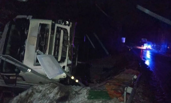 Беломорском округе на трассе «Кола» две фуры съехали в кювет, есть пострадавший.