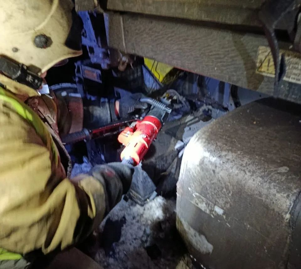 По прибытии они деблокировали пострадавшего из кабины и транспортировали до машины скорой. Разлива топлива нет.