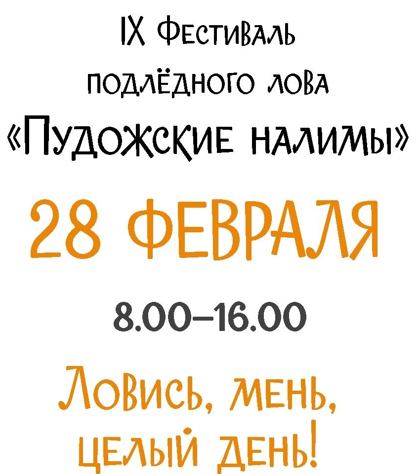 28 февраля 2026 года Водлозерский парк проведет IX фестиваль подледного лова «Пудожские налимы». Большой праздник развернется на берегу озера Водлозеро рядом с усадьбой парка в деревне Куганаволок (0+).
