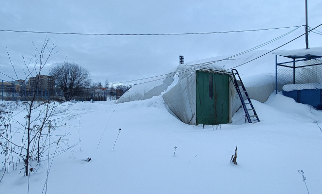 Конструкция падает не в первый раз — в 2019-м году во время сильной метели произошел разрыв шва купола, конструкция обрушилась. Разрыв был величиной в человеческий рост.