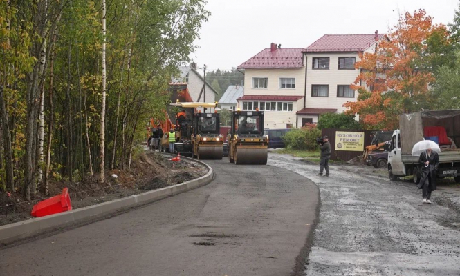 Проезжаю часть на участке уже заасфальтировали, сейчас доделывают тротуар. Комплексный ремонт охватит более 400 метров дороги.