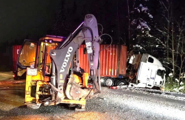 Экскаватор и грузовик столкнулись на трассе в Кондопожском районе — есть пострадавшие
