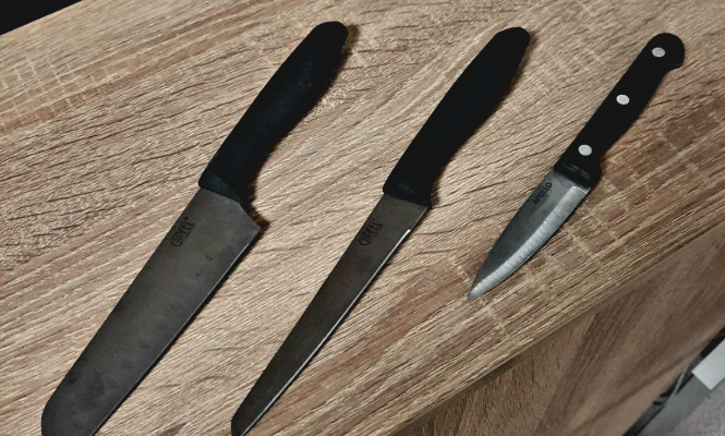 Гражданка достала из сумки три кухонных ножа, не имеющих чехлов или упаковки.