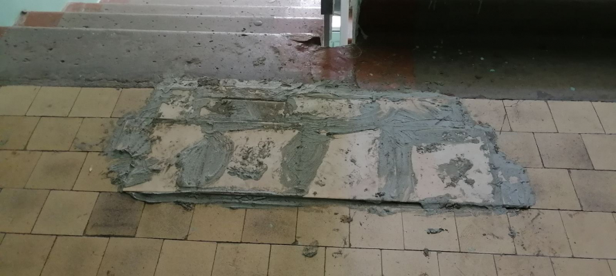 "В июне 2020 года УК "Лидер" по предписанию из Комитета РК отремонтировала отсутствующую напольную плитку в 4 подъезде дома 12 по ул. Шотмана. На сегодняшний день на 4 этаже 4-го подъезда уже отвалился целый ряд плитки. Такого качества ремонта никто из собственников не ожидал от УК", - гласит текст обращения в редакцию "Столицы на Онего".