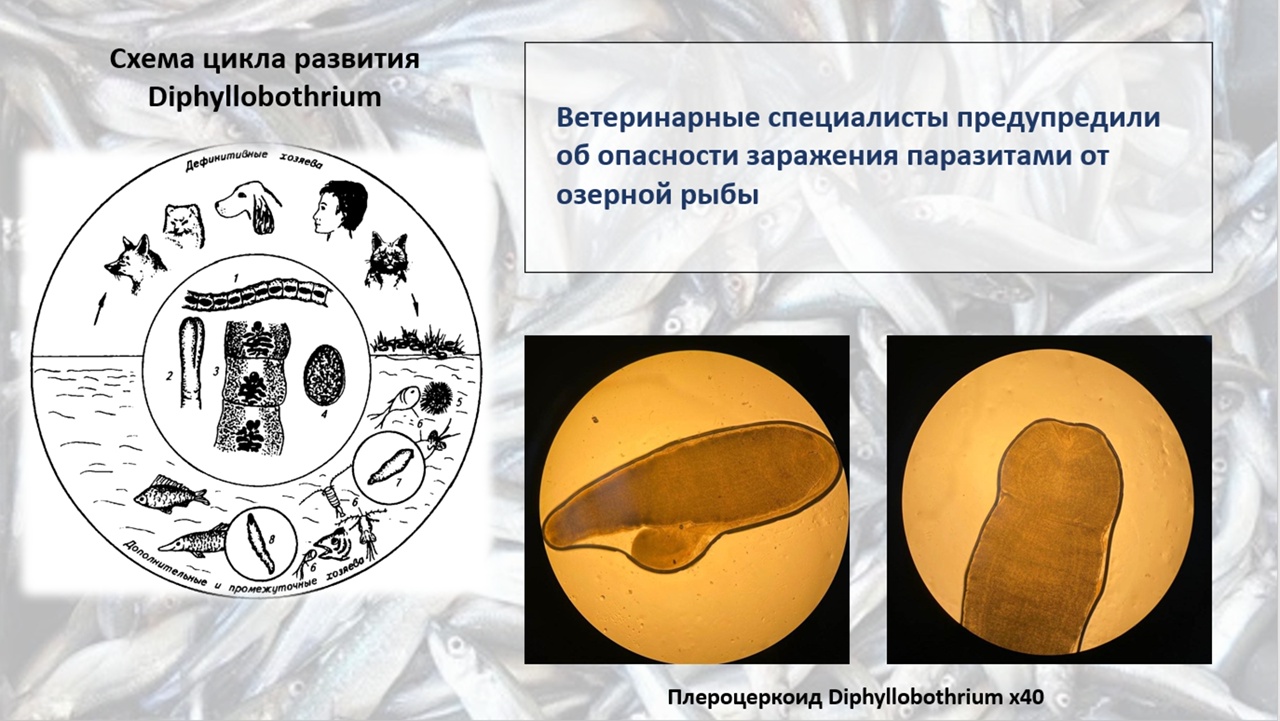 Неделю назад наше издание рассказало заболевании дифиллоботриоз, причиной которого может стать обычная озерная рыба. По данным отдела лабораторного и эпизоотического мониторинга лаборатории «Республиканского центра ветеринарии и консультирования», в республике регулярно фиксируются случаи заражения дифиллоботриозом. Это опасное заболевание вызывают ленточные черви, которые могут достигать в организме человека 15 метров в длину. Заражение происходит при употреблении в пищу плохо проваренной или малосоленой рыбы, содержащей личинки гельминта.