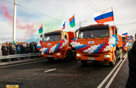 По новому мосту торжественно проехали первые автомобили.