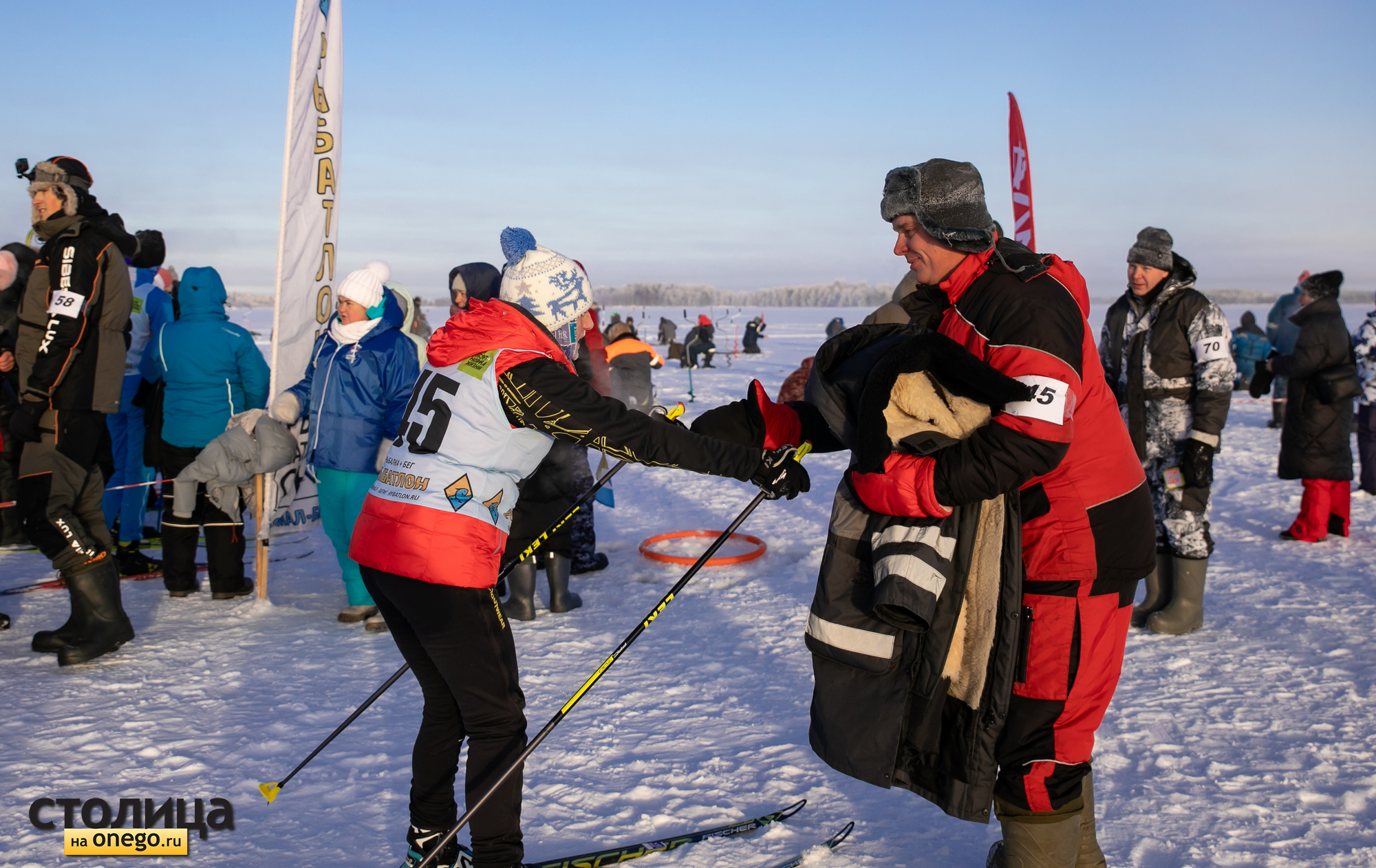 Даже рекордный за все время проведения соревнований мороз в минус 25 градусов не помешал спортсменам азартно ловить рыбу и мчаться на лыжах по озеру.